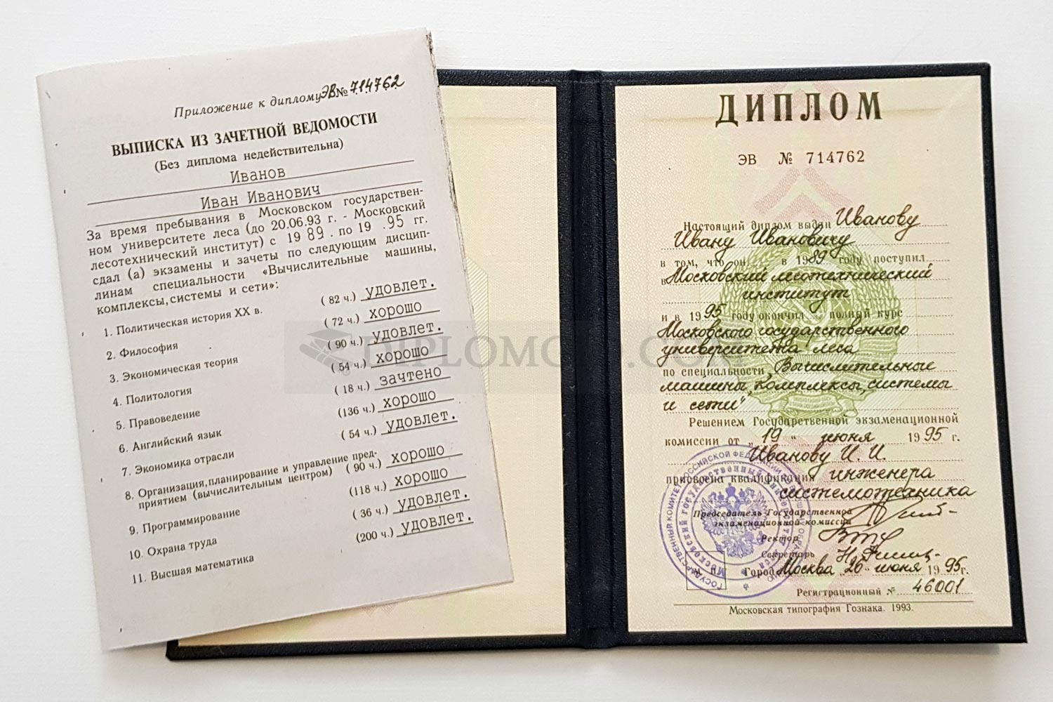 Дипломы на бланках Гознак, защищённые от подделки водяными знаками и пр;